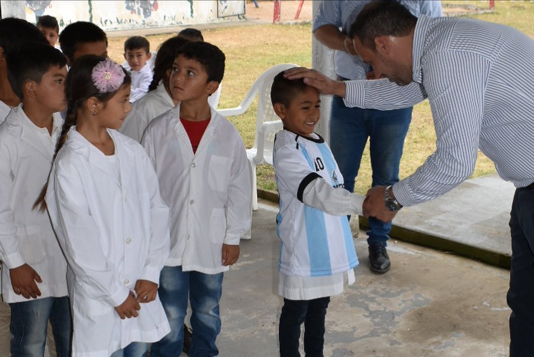 “Visitamos la Escuela Centenaria 586 José Primo Romero, quienes estaban festejando la finalización del ciclo lectivo. Felicitaciones por el premio obtenido a los mejores promedios, una hermosa camiseta Argentina para alentar a nuestra selección”, dijo al respecto el funcionario curuzucuateño.