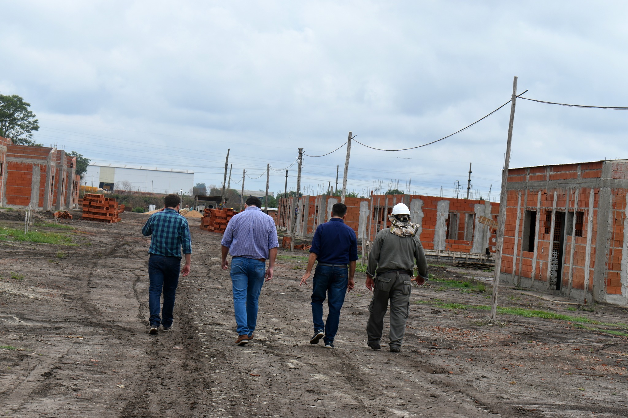 El intendente José Irigoyen, junto a funcionarios de su gabinete, visitó el predio donde se desarrollan las obras que avanzan según los plazos establecidos y significarán un aporte sustancial para dar respuesta a la necesidad de más unidades habitacionales para nuestros vecinos.