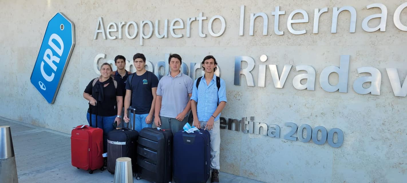 Martín Fracalossi Barbat, Luca Sebastian Zugasti, Bartolomé Labarthe Arrien y Bautista Leyes, alumnos del Instituto Maria Auxiliadora, ganadores de la Ovinpiadas Nacionales 2022 realizada en nuestra sociedad rural, se encuentran en la escuela Agrotecnica 725 en Sarmiento, provincia de Chubut capacitándose. Ellos, están acompañados por su profesora, Silvina Vargas.