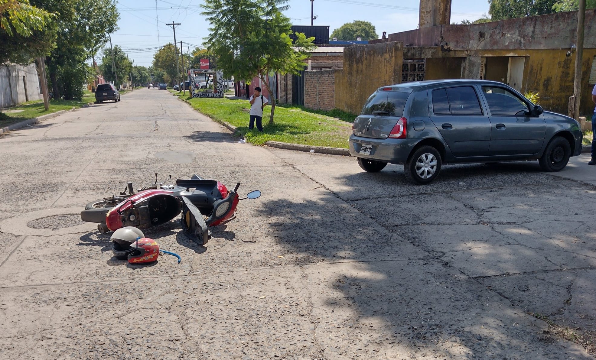 De acuerdo a lo informado a Enfoque Digital, un automóvil y una moto de 110 centímetros cúbicos protagonizaron cerca del mediodía del lunes un accidente en la esquina de las calles Soldado Meza y Simón Sánchez en el barrio de INVICO de nuestra ciudad.
