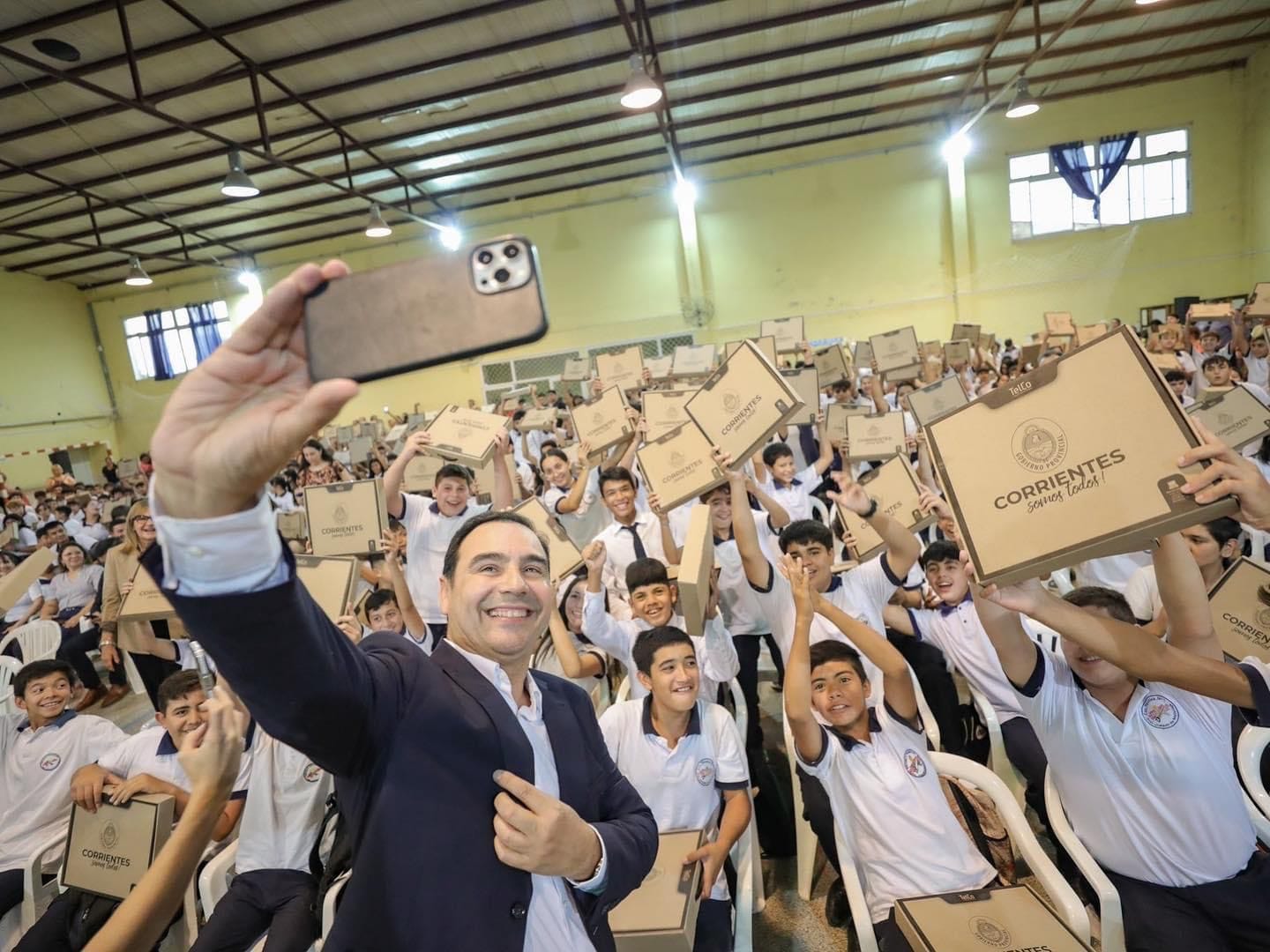 La gira dio inició en el Colegio Secundario “Simeón Payba” con la entrega de notebook de programa provincial Incluir Futuro, que permitió que hoy 379 estudiantes de siete establecimientos de Bonpland, Parada Pucheta, Tapebicuá y Paso de los Libres, accedan al mundo de la educación digital.