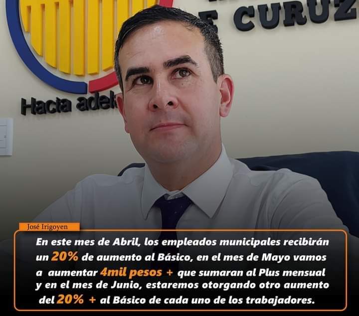 El Intendente Municipal José Irigoyen anunció este jueves un aumento de un 20% al Básico de todos los empleados municipales a partir de abril.