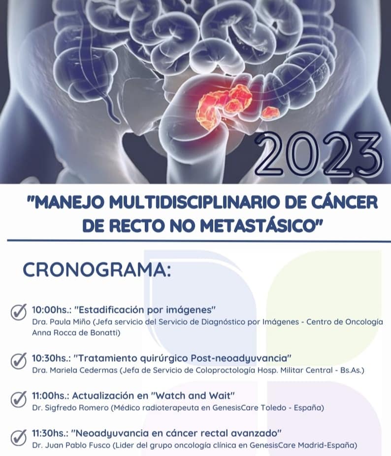 El próximo miércoles 19 de abril, a partir de las 10 de la mañana, en el Centro Oncológico de Curuzu Cuatiá se realizará una charla sobre “MANEJO MULTIDISCIPLINARIO DE CANCER DE RECTO NO METATASTICO”.