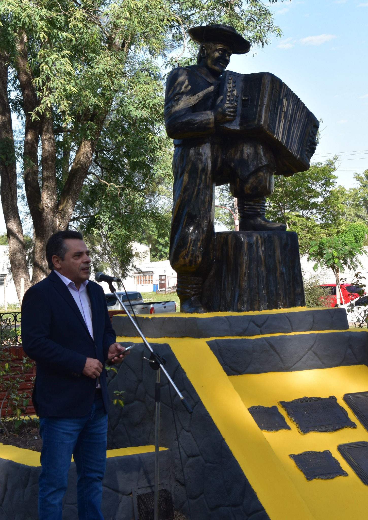 Luego en el monumento situado en el Parque Mitre se inauguró el trabajo de realce estético al predio, obra del artista plástico Jorge Gamarra, que incluye la leyenda “Cuna de Músicos Chamameceros” en letras corpóreas y la escultura “Melodía Tarragosera”, en alusión a que este 2023 se cumplirá el centenario de su natalicio.