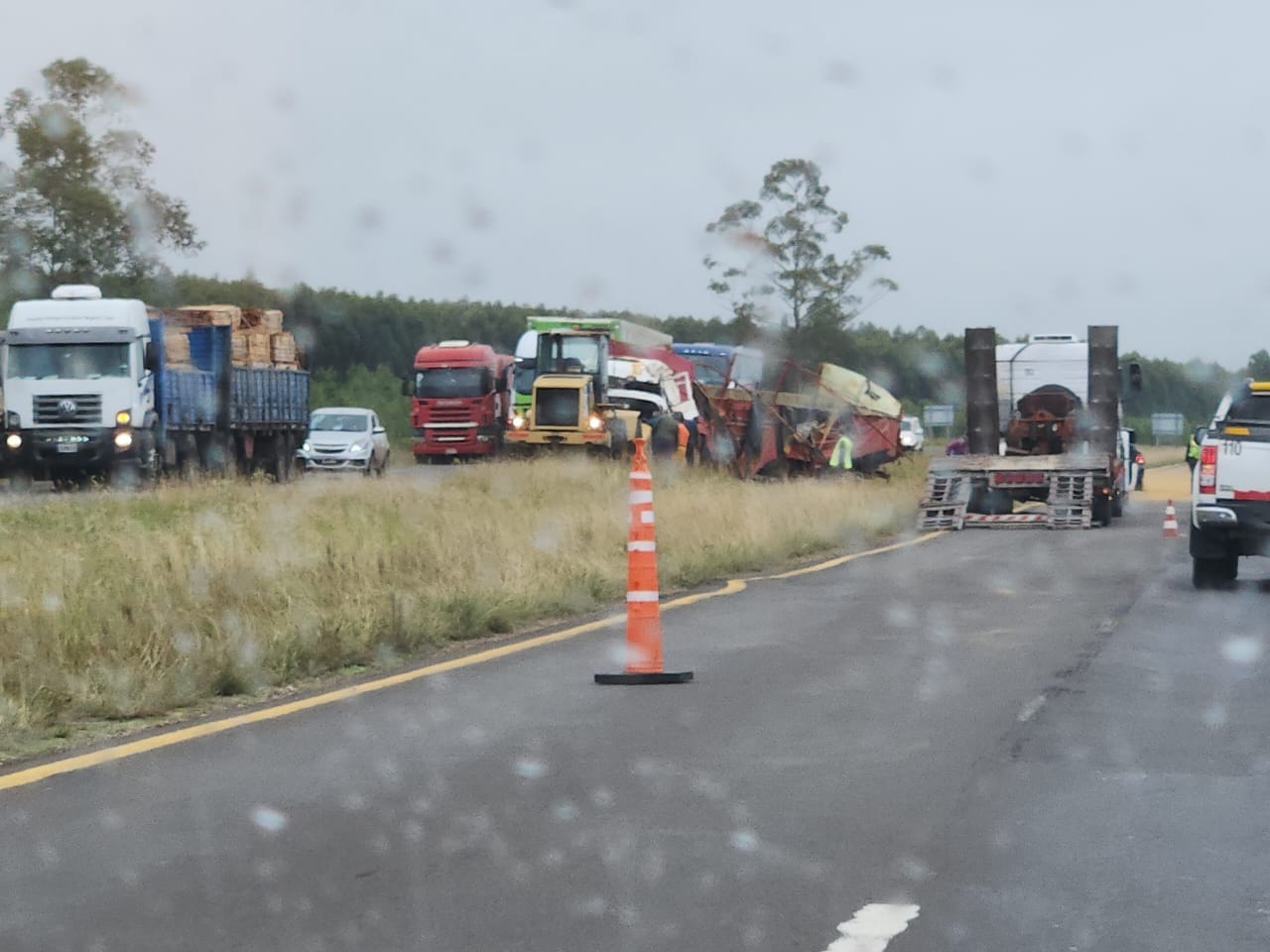 Un camión, aparentemente cargado con alimento para animales despistó en el kilómetro 482 de la autovía 14. No se conocen muchos detalles, pero en el lugar se encontraban personas recolectando la carga.
