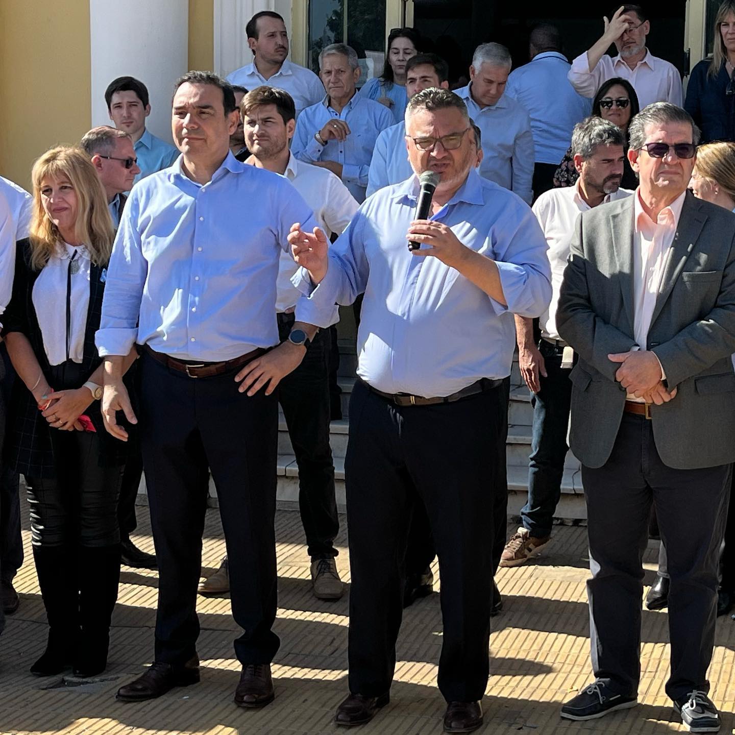 El Coordinador de Asuntos Municipales de la Región Centro Sur, el curuzucuateño Juan Manuel Saloj, acompañó este martes al Gobernador Gustavo Valdés en Monte Caseros de la entrega de bienes de capital en la ciudad.