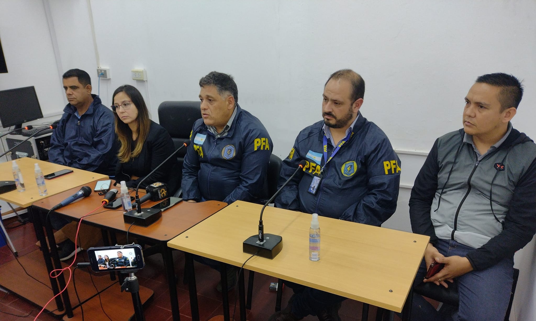 De Izquierda a Derecha: Comisario Inspector Diego López, Dra. María José Barrero Sahagún, Comisario Inspector Ricardo Juri, Subcomisario Damián Clenard, Oficial Principal Cristian Pérez