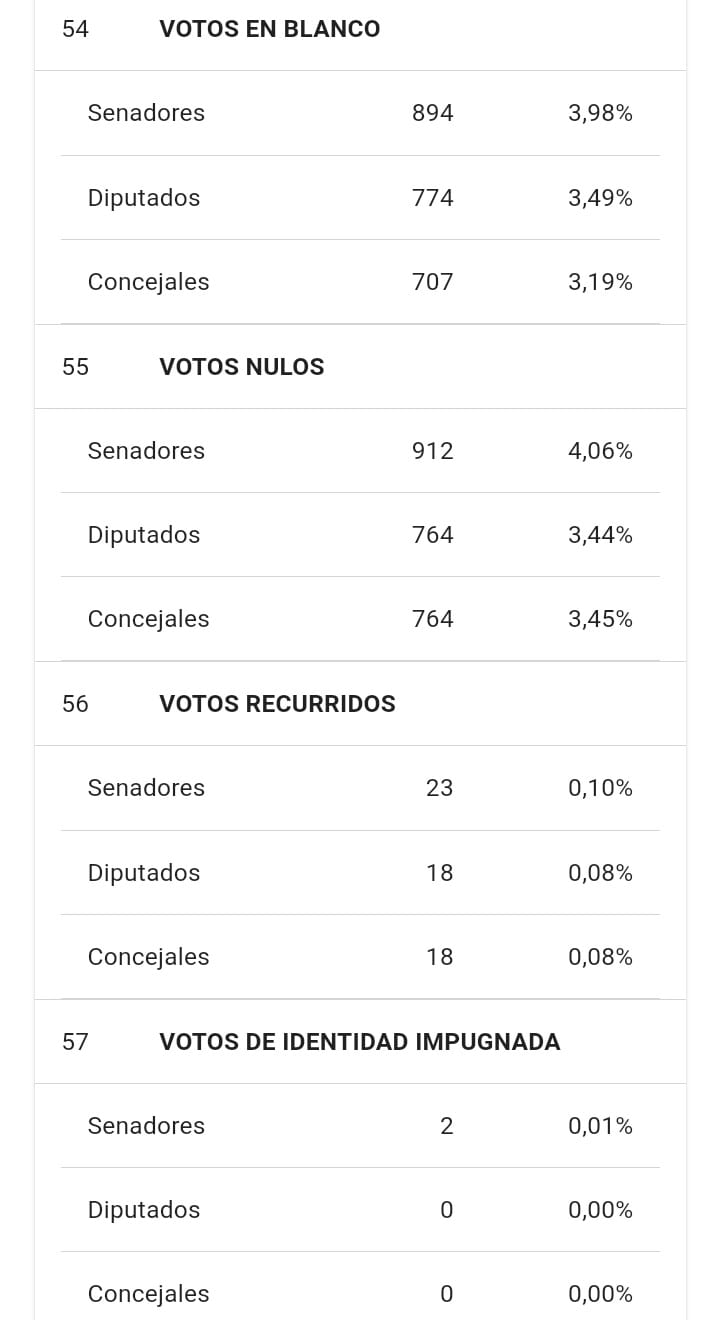 La página oficial del escrutinio 2023 en la provincia de Corrientes dio a conocer los resultados con el 100% de las mesas escrutadas en Curuzú Cuatiá, dejando como dato final que votaron 20.476 personas de las 34.410 habilitadas para votar, lo que significa el 59,51% del Padrón Oficial.