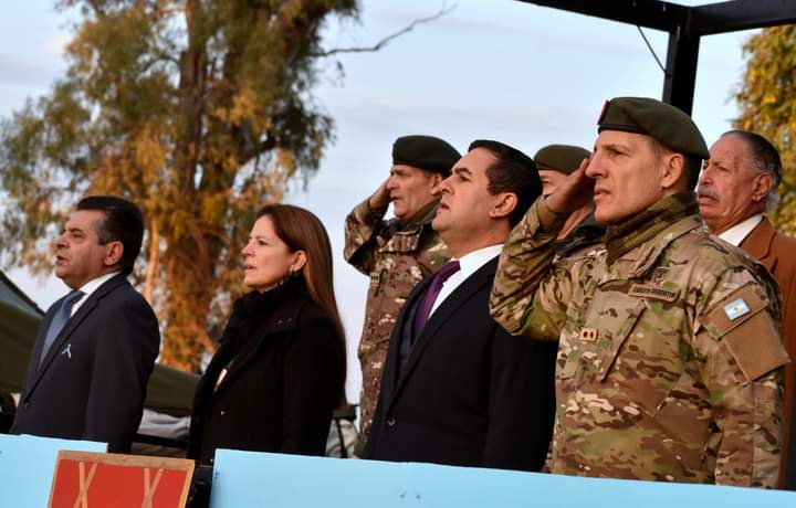 El intendente José Irigoyen, junto al Viceintendente Guillermo Morandini, acompañó la ceremonia que estuvo presidida por el General de Brigada Aldo Daniel Ferrari y se desarrolló en la Plaza de Armas “Islas Malvinas”, perteneciente al Comando de la Primera División de Ejército.