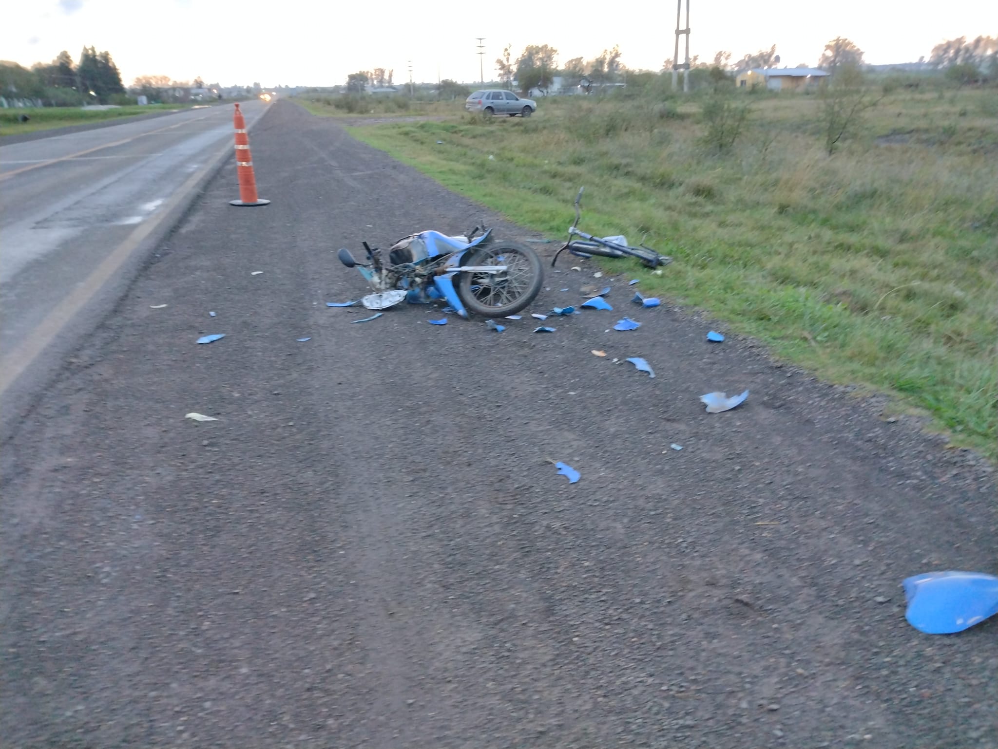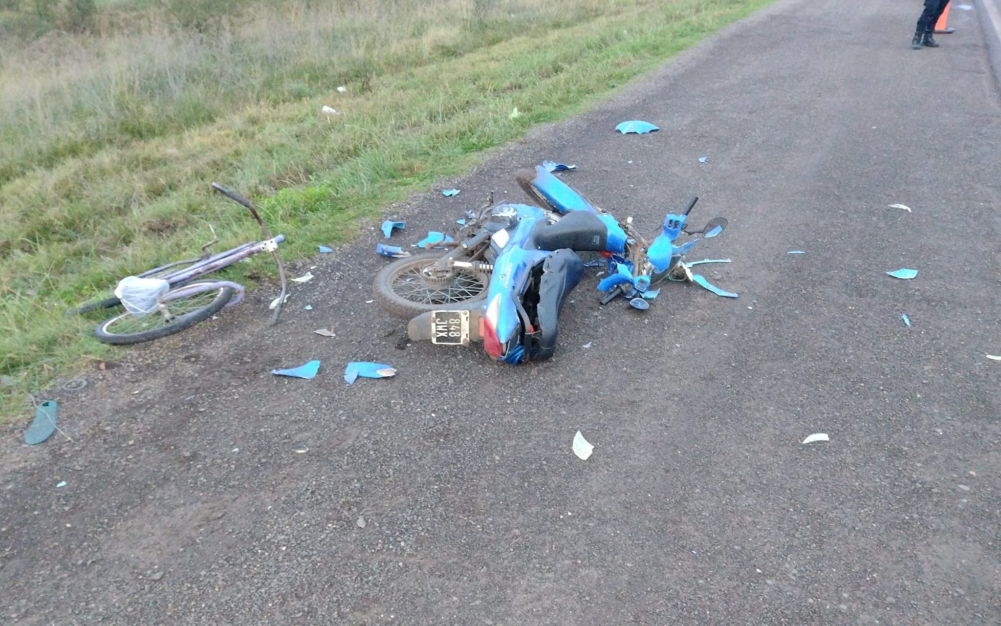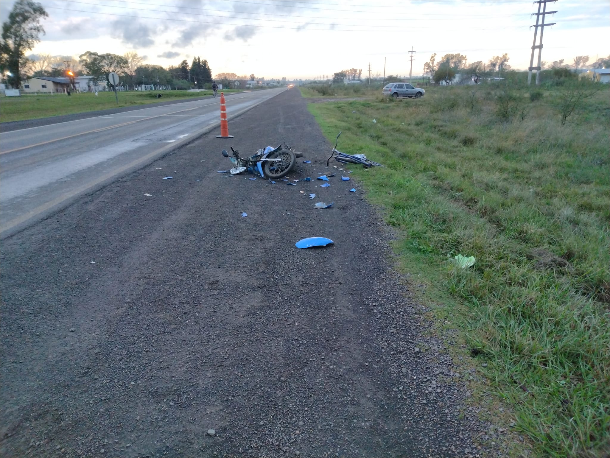 Una moto de 110 centímetros cúbicos y una bicicleta protagonizaron minutos después de las siete de la mañana del miércoles un accidente sobre ruta nacional 119, a pocos kilómetros del acceso oeste a nuestra ciudad.
