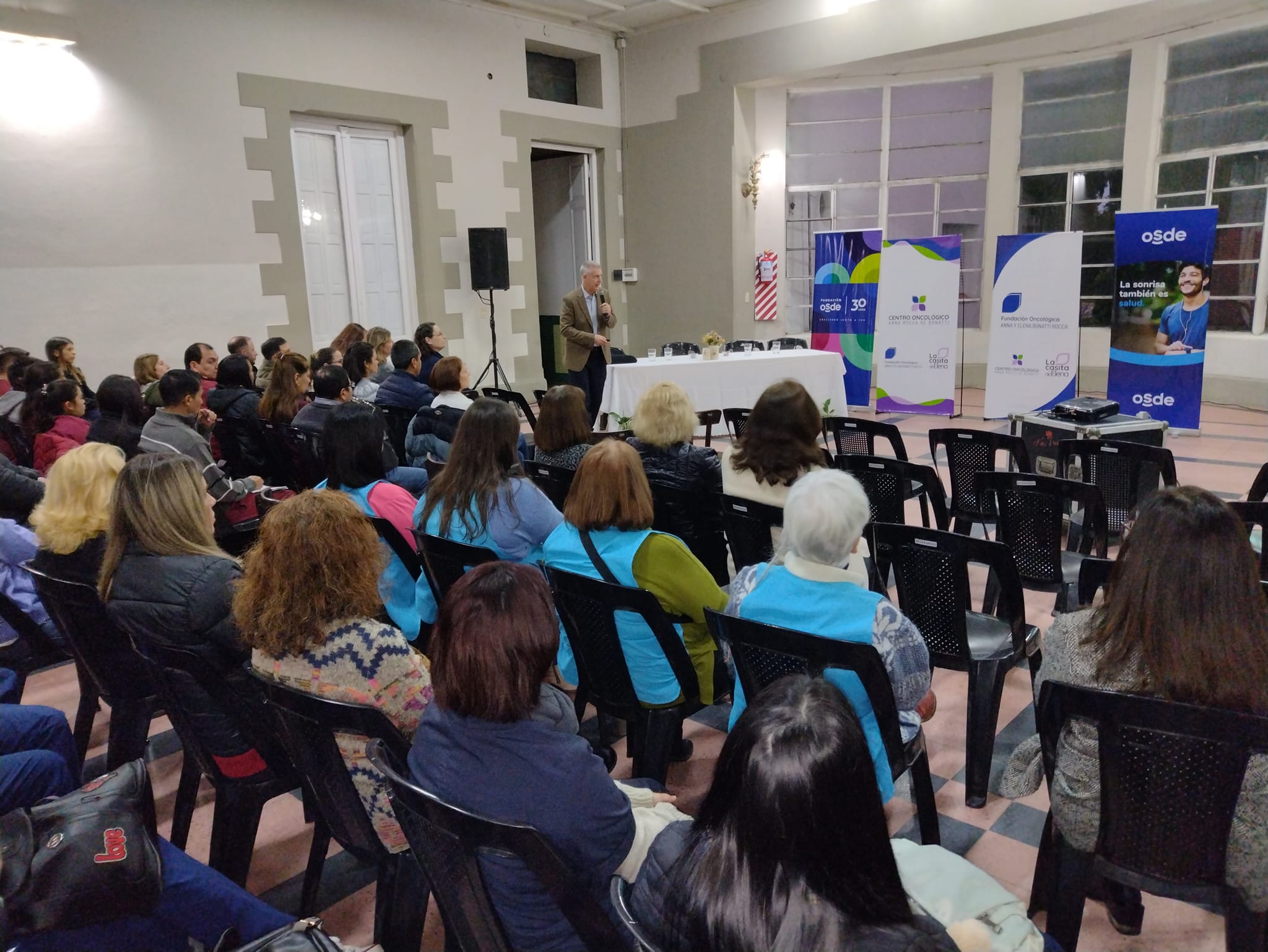 Autoridades de la Fundación OSDE y del Centro Oncológico tuvieron a su cargo las palabras de bienvenida a los presentes y luego se presentó al disertante quien agradeció la invitación y destacó la importancia de hablar de este tema, destacando el interés generado a través de la gran asistencia en el salón.