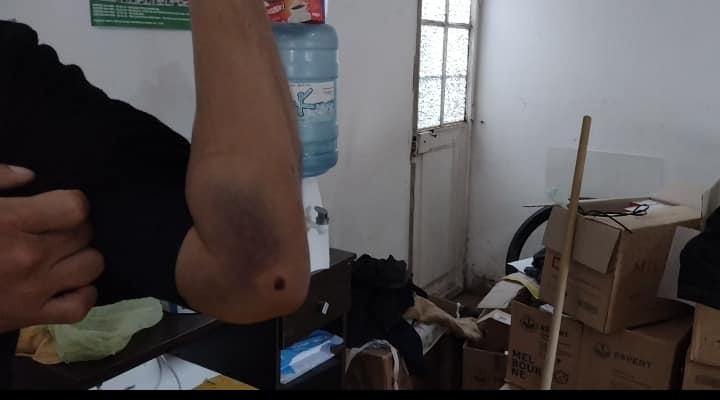 Las secuelas del robo quedaron reflejadas en el charco de sangre que quedaron en el pavimento, la misma emanaba de la integridad del agenciero, a quien tuvieron que suturarle la cabeza con nueve puntos.