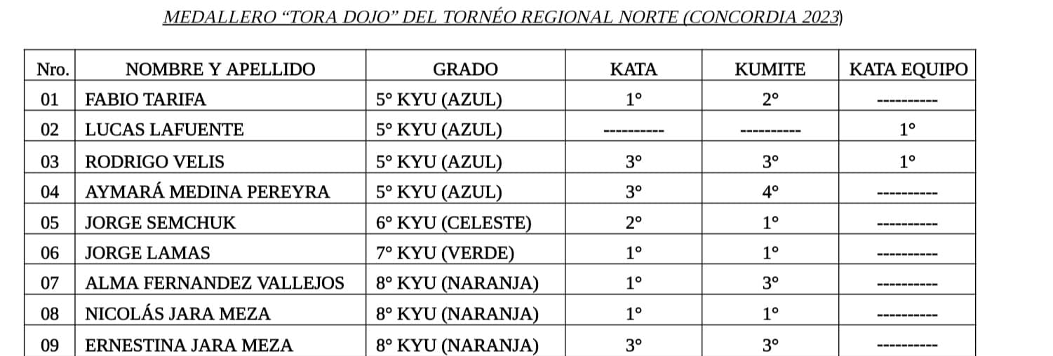 El pasado fin de semana, se llevó a cabo en la ciudad de Concordia, el “TORNEO REGIONAL NORTE” de karate Tradicional Shotokan, de la escuela de Sensei Justo Gómez (7° Dan y 7 veces Campeón Mundial).