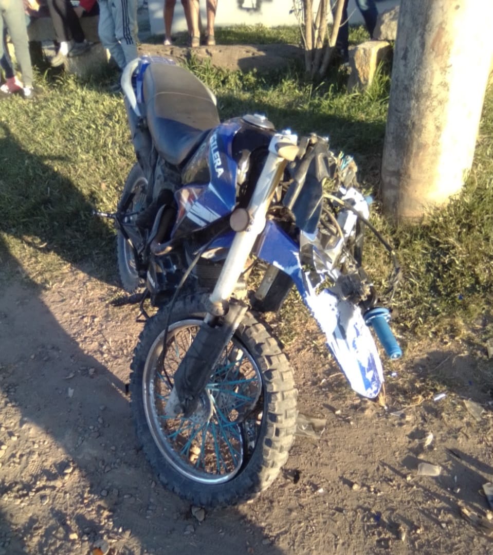 Una moto de alta cilindrada conducida por un menor de 15 años protagonizó un accidente con un auto, el rodado menor terminó impactando contra una columna del servicio de energía.
