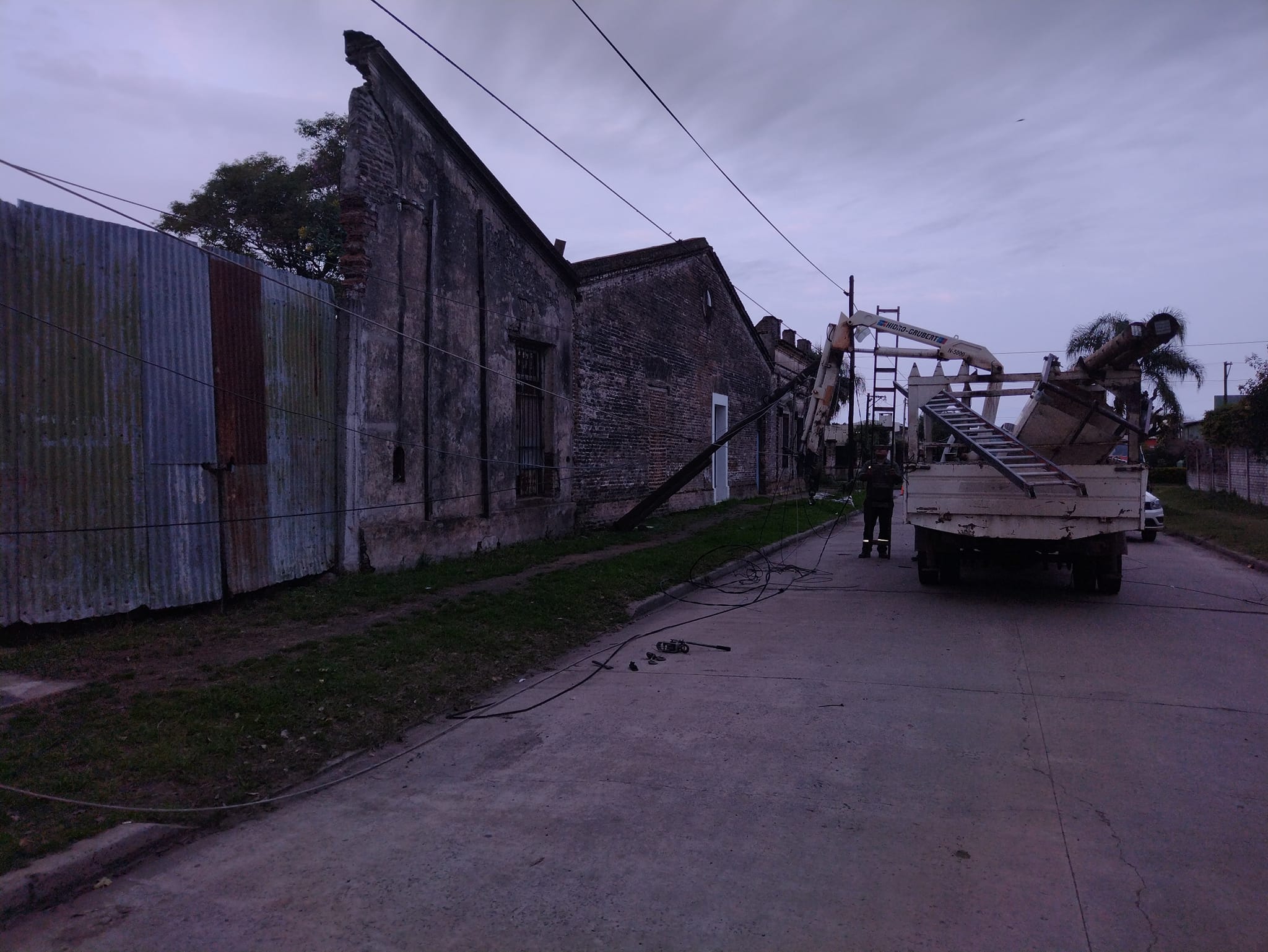 Al tocar los cables que estaban bajos se llevó puesto dos postes y arrastró el tendido de energía de la DPEC y de otras empresas de servicio, uno de los postes derrumbados tenía una cámara de seguridad.