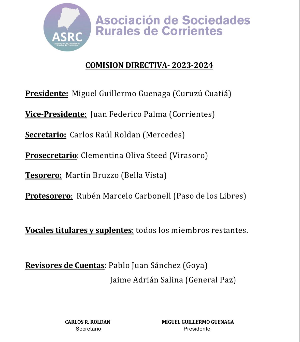 "Titi", que a fin de año dejará la presidencia de la Sociedad Rural de Curuzu Cuatia, fue electo al frente de ASRC en la asamblea que la entidad asociada a CRA realizó este sábado en la Sociedad Rural de Bella Vista.