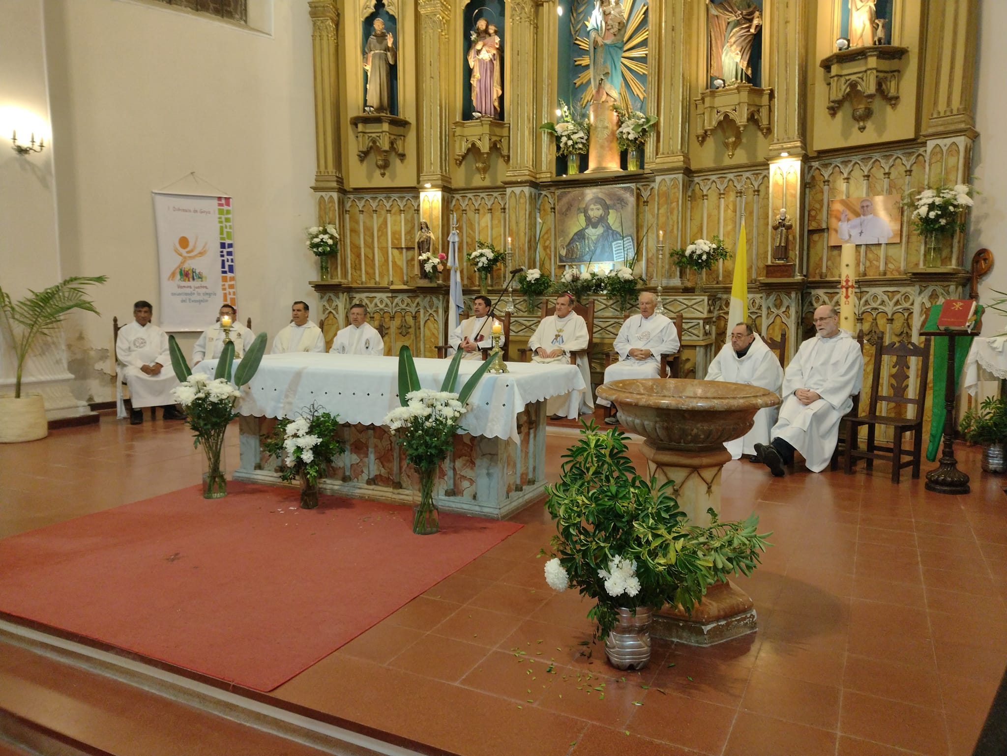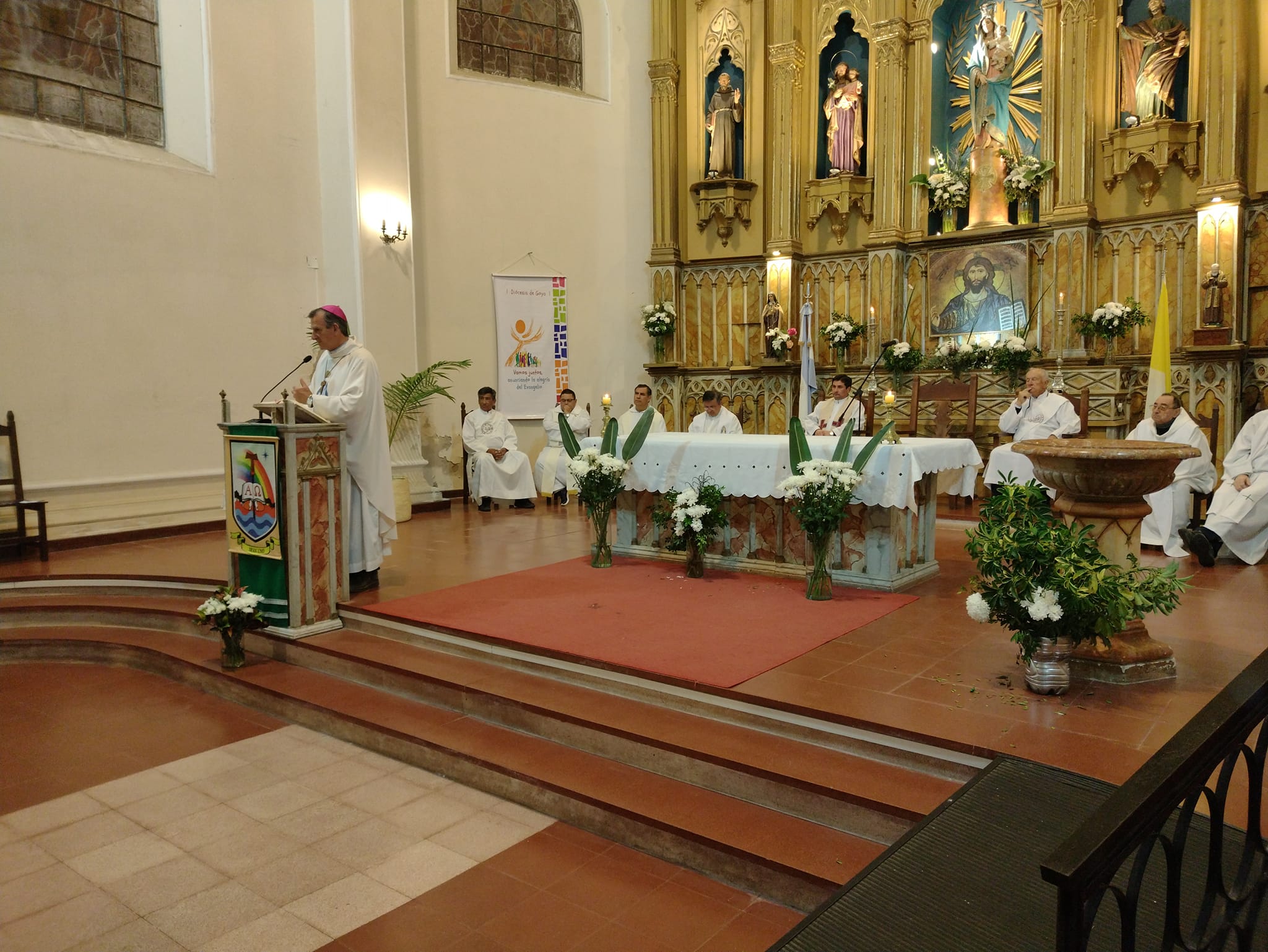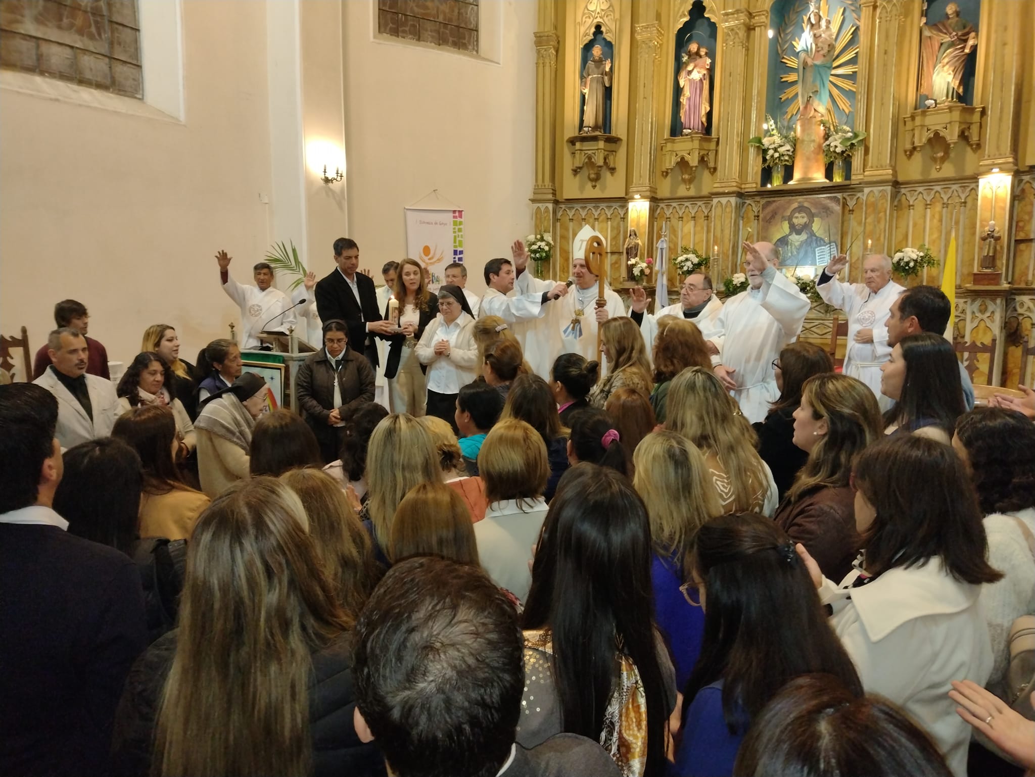 Las inclemencias del tiempo obligaron a cambiar el frente de la Capilla Santa Teresita por el interior de la Parroquia Nuestra Señora del Pilar para la Misa de Despedida de las Hermanas, celebración que se llevó a cabo minutos después de las 19 horas del jueves y fue oficiada por el Obispo de la Diócesis de Gota Monseñor Adolfo Canecín.