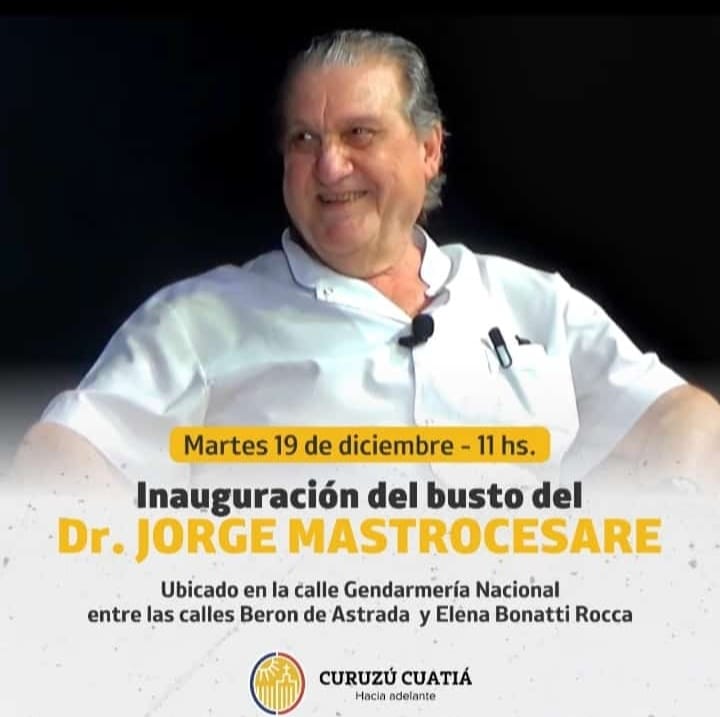 El próximo martes 19 de diciembre a las 11 horas se realizará la inauguración del busto en honor al reconocido traumatólogo y querido Dr. Jorge Mastrocesare.