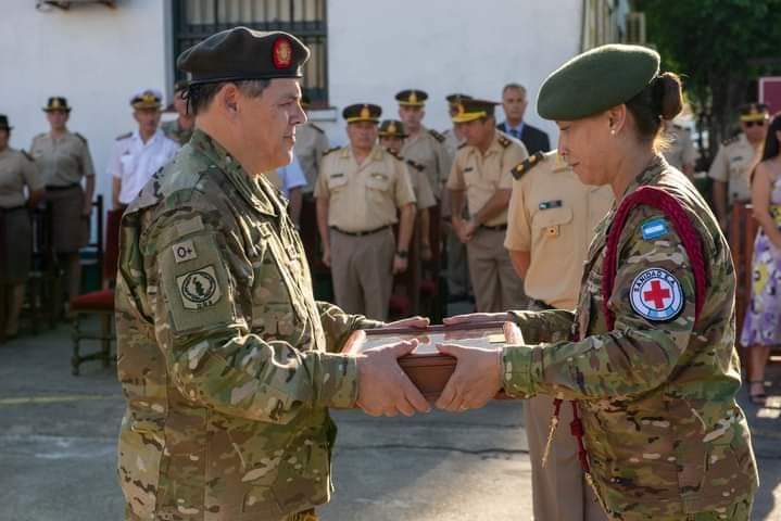 La ceremonia fue presidida por el jefe del Ejército, general de brigada Carlos Alberto Presti. Allí se leyó la síntesis de la trayectoria militar del director general de Salud saliente, general de brigada Javier Alberto Palazón, quien hizo uso de la palabra y recibió de la encargada de Elemento un cofre que contenía la banderola que lo acompañó durante su tiempo en el cargo.