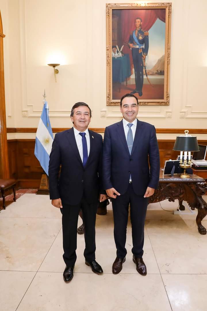Al finalizar la sesión especial, el Diputado Benítez se acercó hasta el despacho del Gobernador Valdés a saludarlo "y a desearle el mayor de los éxitos en este año lleno de desafíos para la provincia", indicó.