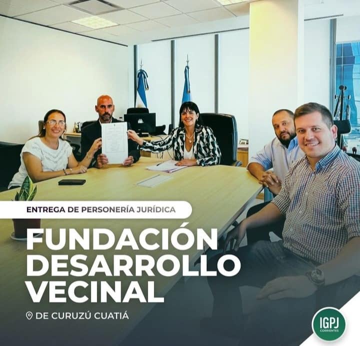 La Inspectora General, Dra. Belén Vergez, entregó la Personería Jurídica a miembros del Consejo de Administración de la nueva fundación “Desarrollo Vecinal” de la localidad de Curuzú Cuatiá.