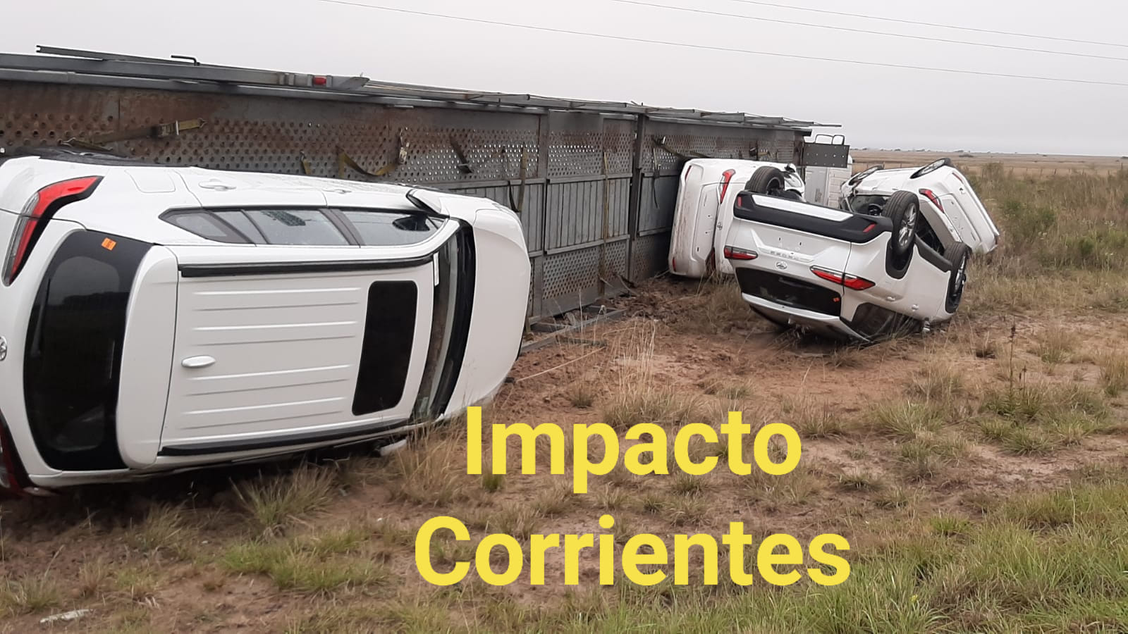 Un camión de transporte de automóviles, que había pasado tiempo antes frente a Curuzú Cuatiá, despistó y volcó cuando circulaba cerca de la ciudad de Mercedes, en la Ruta Nacional 119.