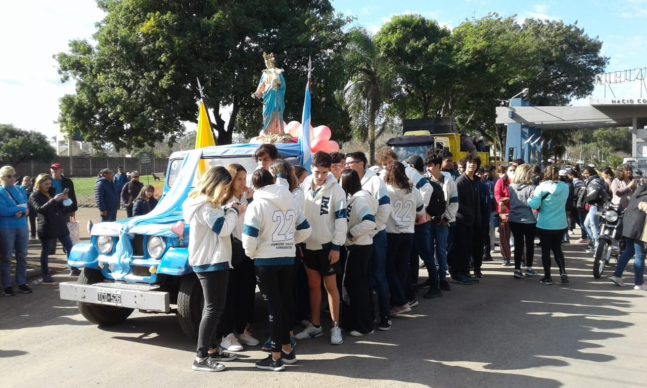 La concentración tuvo lugar en el pórtico del acceso oeste desde las 13:30, hasta allí llegaron personas de distintos barrios y de todas las comunidades católicas curuzucuateñas, que con entusiasmo y algarabía marcharon desde las 14 hacia predio de la Virgen.