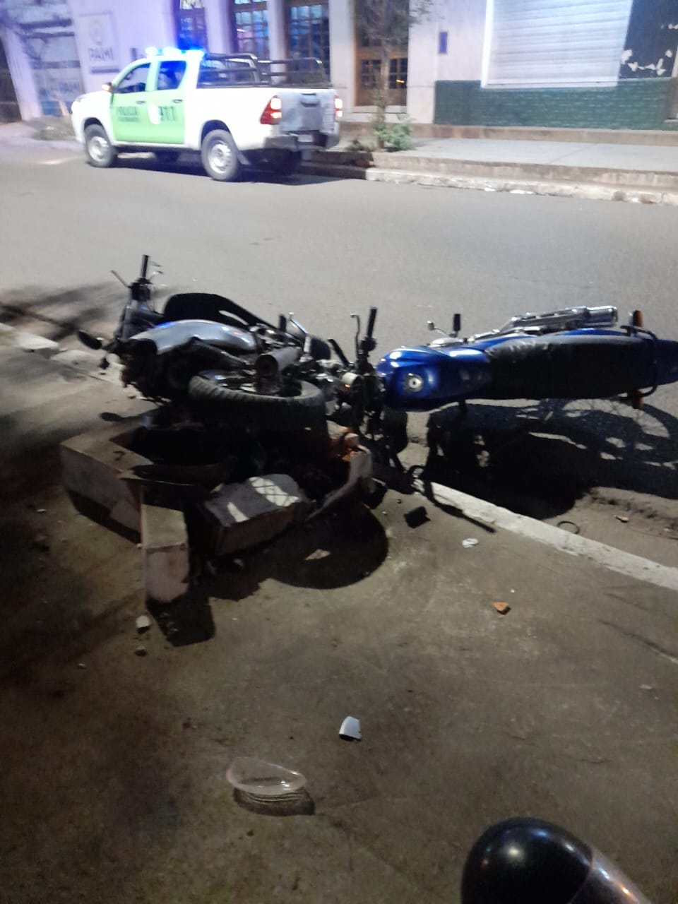 Dos motos, una de 110 y la otra de 150 centímetros cúbicos, colisionaron violentamente en horas de la noche del domingo en la esquina de las calles Castillo y Rodríguez Peña; informaron las autoridades a Enfoque Digital.
