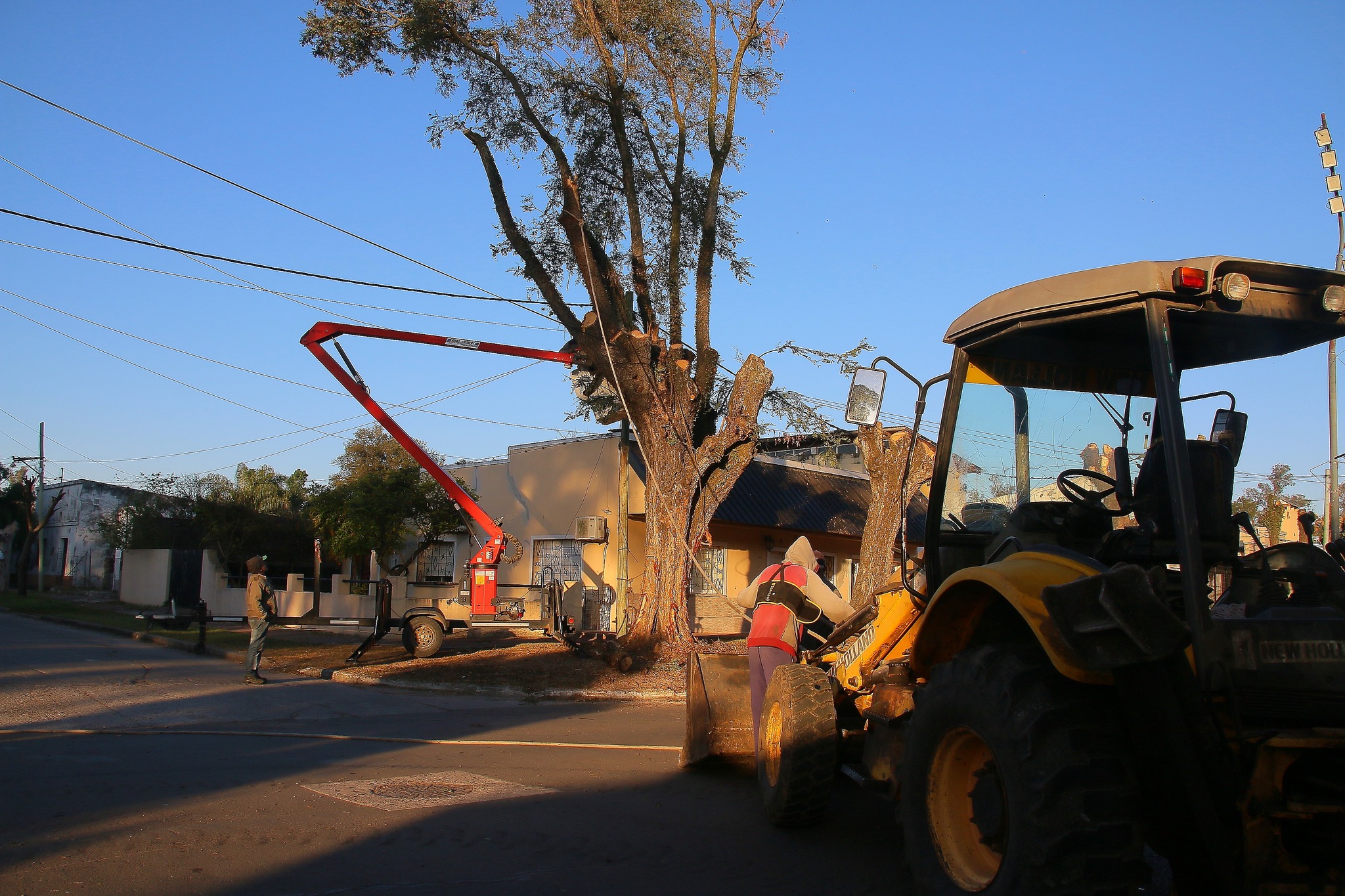 La Secretaria de Servicios Públicos de la Municipalidad está llevando a cabo intensos trabajos de poda del arbolado en la avenida Mitre, entre Comandante Andresito y Rodríguez Peña.