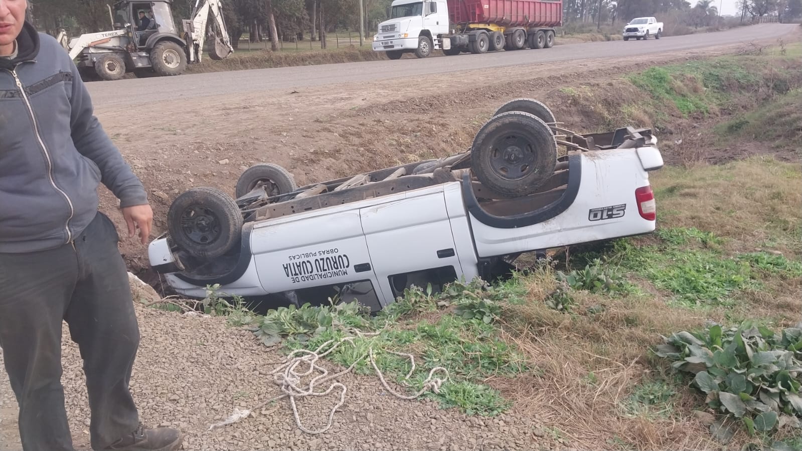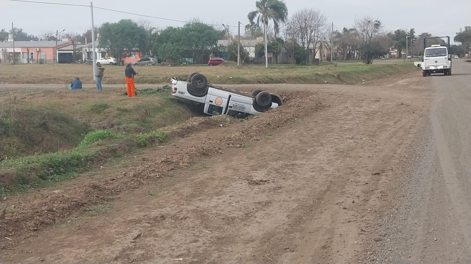La camioneta mordió la banquina cuando iba a doblar desde calle Rio Aguapey, por donde circulaba de este a oeste, hacia la ex ruta 14 y cayó a un zanjón.