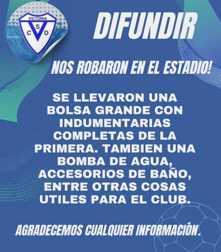 Por otra parte, delincuentes ingresaron al estadio del Club Victoria y se robaron la bomba de agua y accesorios de los sanitarios.