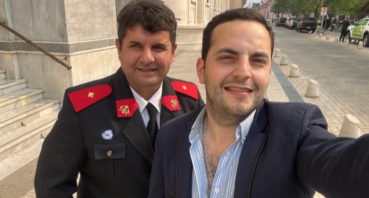 En representación del cuartel curuzucuateño recibiò el Presidente de la Comisión Normalizadora Pedro Pocai, quien asistiò al acto acompañado  por el Oficial Inspector Gustavo Claus a cargo de la jefatura del Cuerpo Activo de Bomberos.