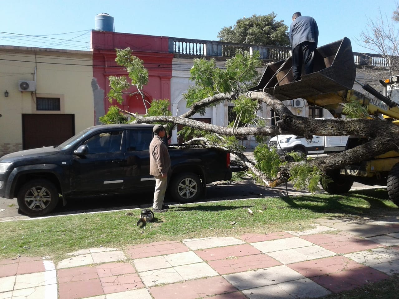 Un añejo árbol ubicado sobre la vereda que da a calle Rivadavia al 400, en Plaza San Martin, se desplomó en horas de la mañana del domingo y terminó sobre una camioneta Amarok que se encontraba estacionada.