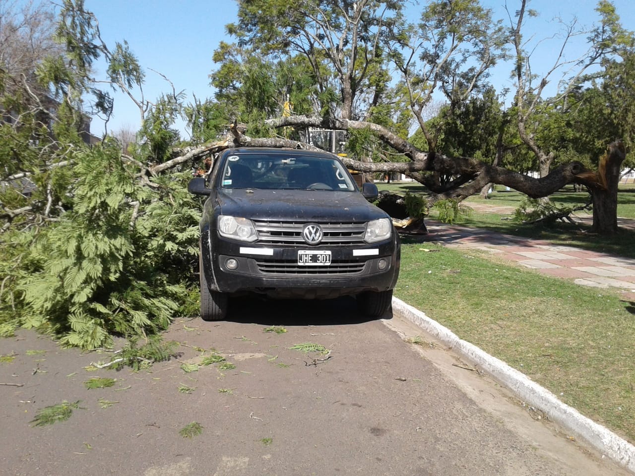 El incidente solo dejó algunos daños materiales en la parte trasera y superior de la cabina del rodado, aunque su conductor logró retirarla andando posteriormente, porque a pesar de la espectacularidad de la imágenes, el árbol no lo impactó de lleno.
