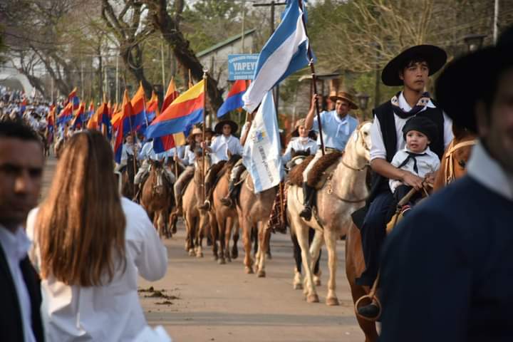 La presencia de estos jinetes se ha convertido en un símbolo del fervor y la dedicación que la ciudad de Curuzú Cuatiá mantiene viva en honor al Libertador.