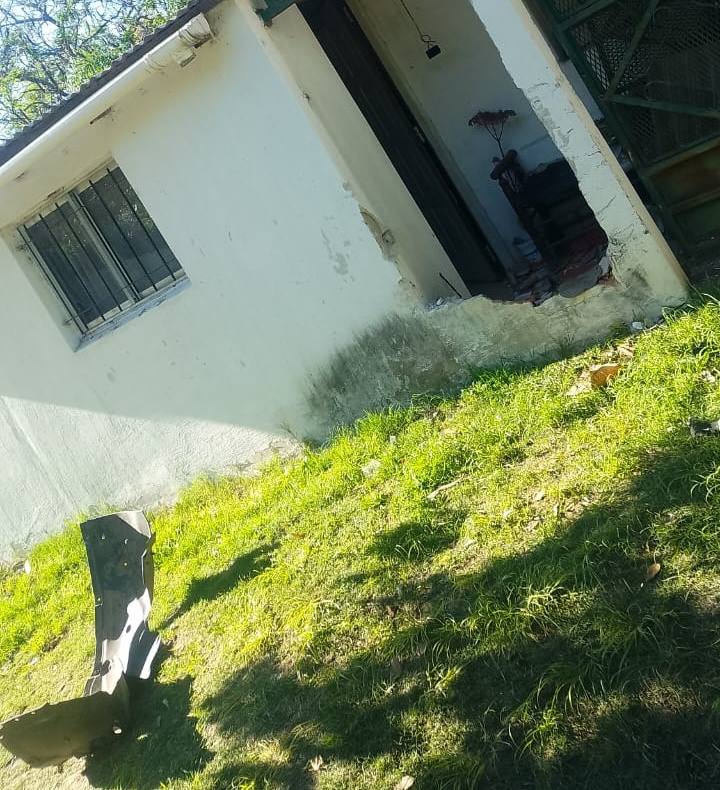 La información fue proporcionada a Enfoque Digital por la sobrina de la habitante de la propiedad, quien relató que el choque dejó únicamente daños materiales en una parte del frente de la casa.