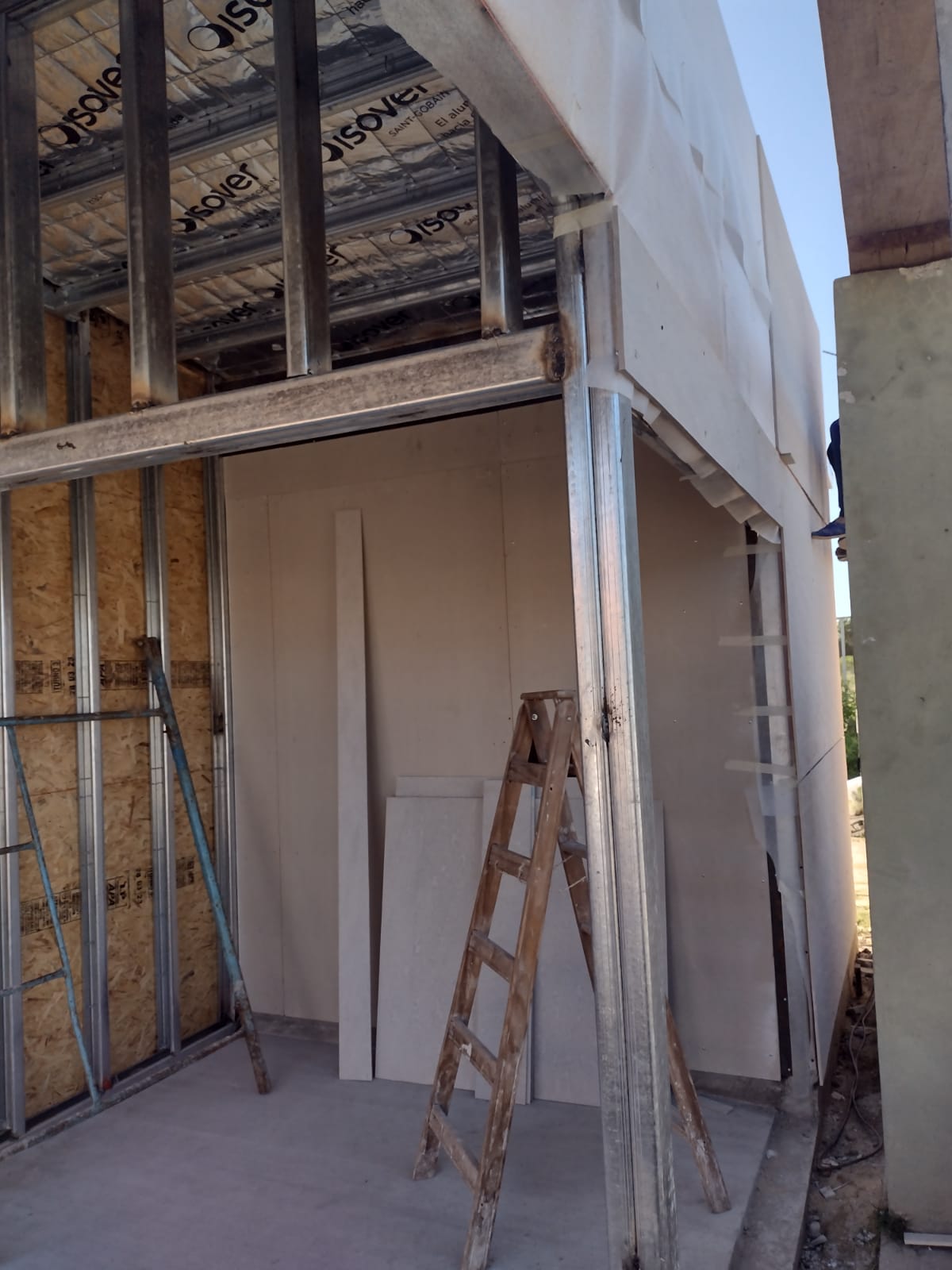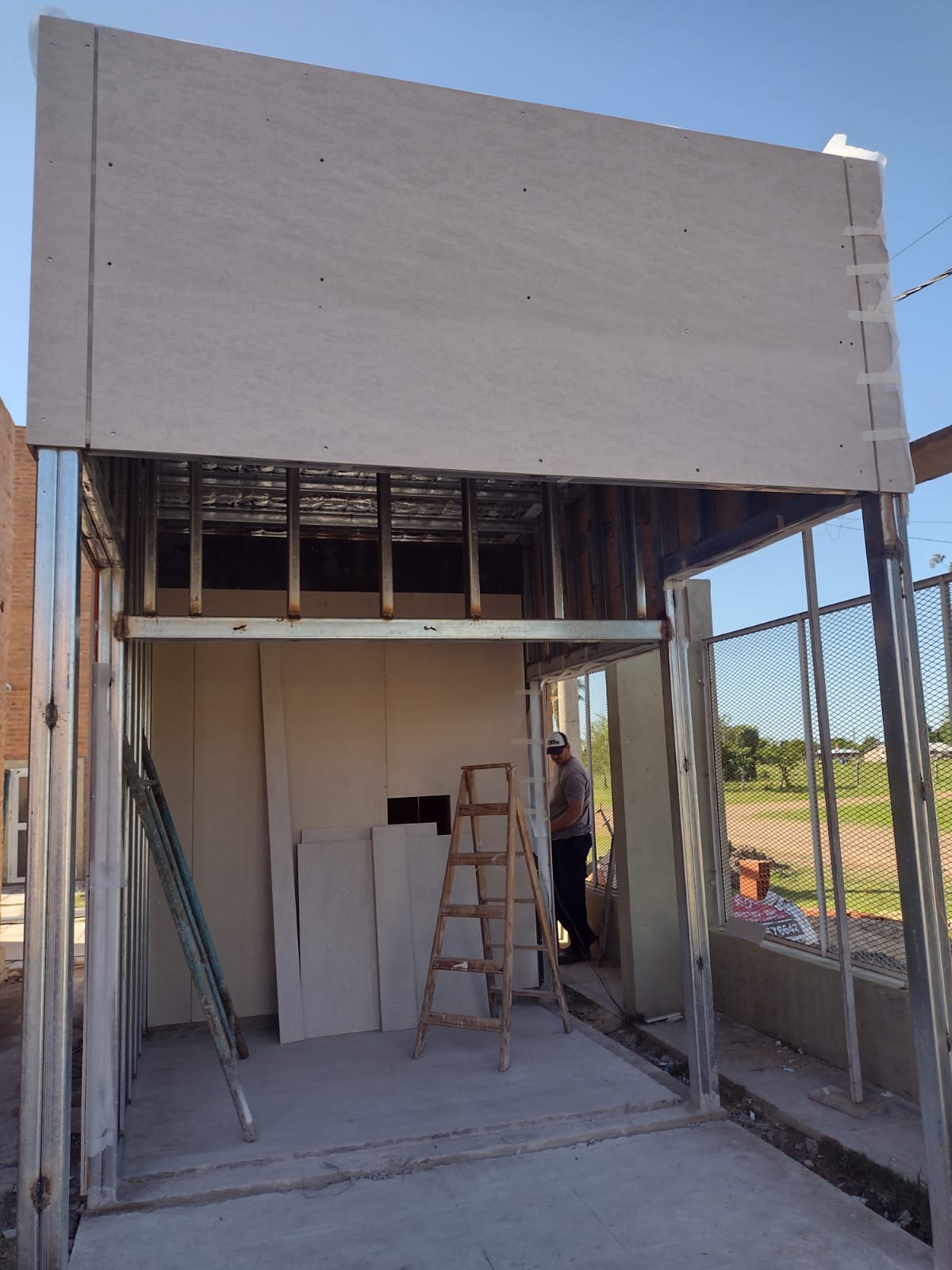 La obra de construcción del recinto para los cajeros automáticos del Banco de Corrientes avanza a paso firme.