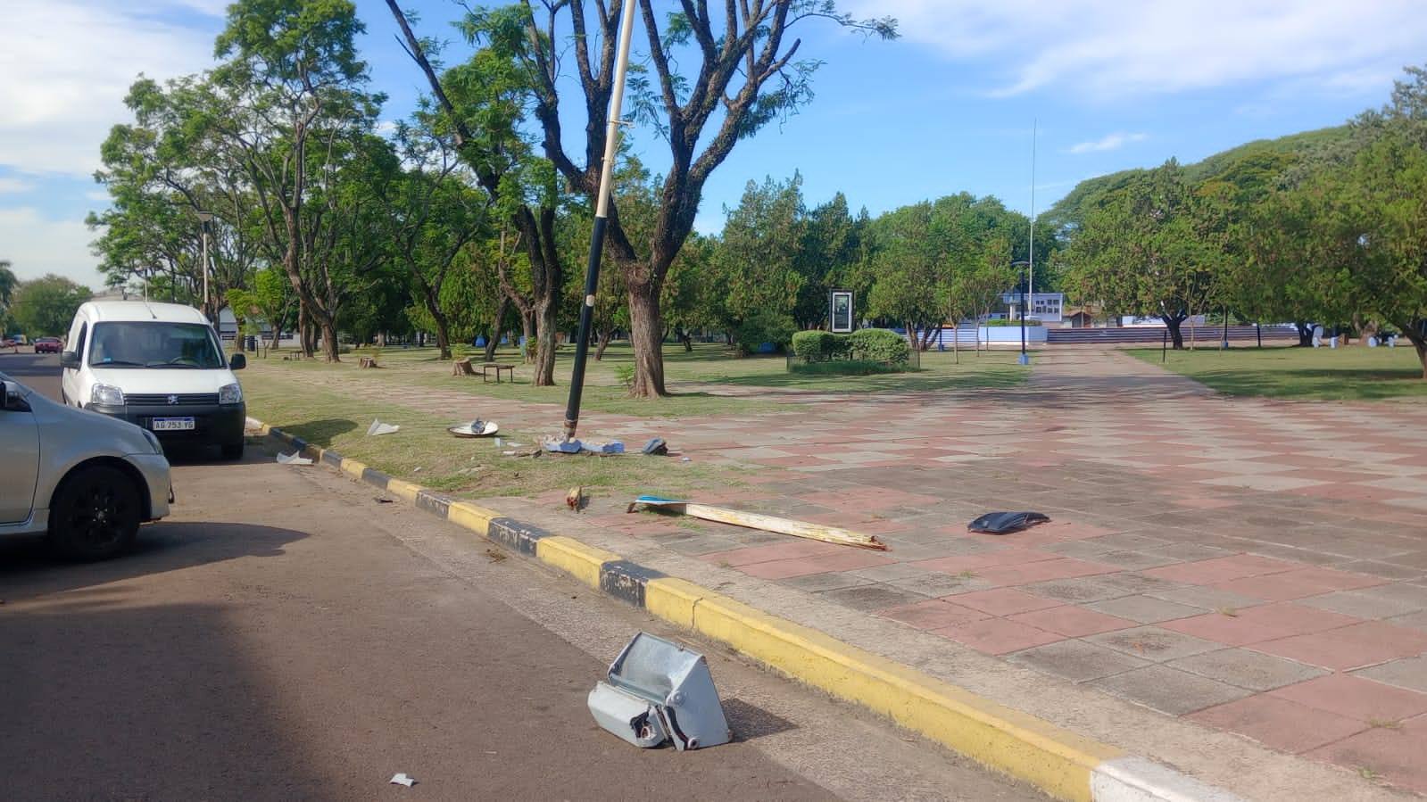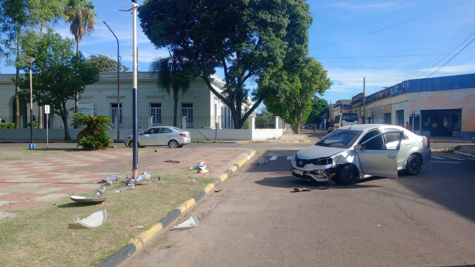 Un masculino, mayor de edad, perdió el control del automóvil que conducía y terminó impactando contra una de las columnas del sistema de iluminación de la Plaza San Martin y llevándose puesto un cartel del estacionamiento de motos.