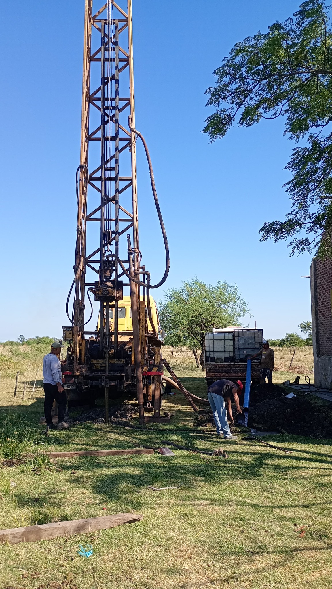 Tras gestiones municipales, la empresa contratada ya está en la localidad realizando la perforación, financiada con recursos propios.