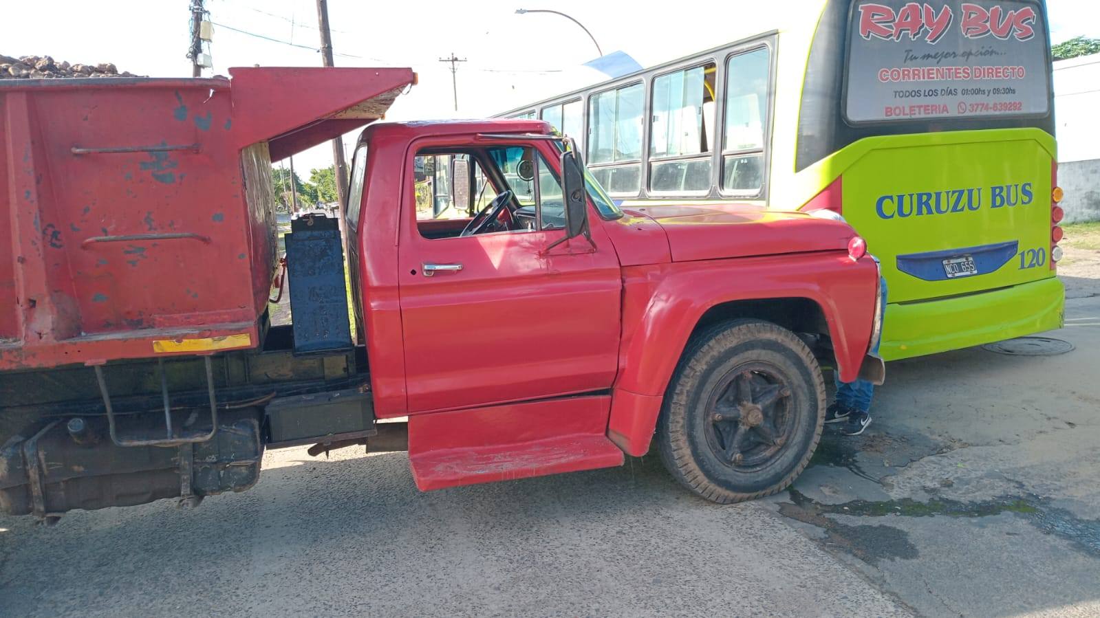 Un camión de la Municipalidad que transportaba escombros y un interno de la Línea 2 de la empresa Curuzú Bus chocaron en horas de la tarde del martes en la intersección de las calles Sarmiento y Castelli.