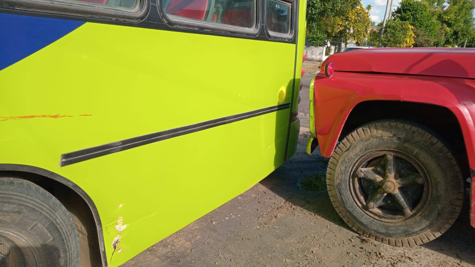 Desde la empresa de transporte urbano de pasajeros señalaron a nuestro medio que el camión se quedó sin frenos, ocasionando daños en una parte del lateral izquierdo del colectivo, aunque los daños solo fueron materiales, ya que ninguno de los integrantes del pasaje sufrió lesiones.