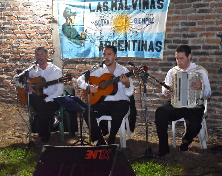 La velada, que contó con la presencia de ex combatientes, autoridades municipales, legislativas y militares y familiares de los Veteranos de Guerra, comenzó con la inauguración de un nuevo mástil en el patio de la institución, junto a un cartel donado por la Municipalidad que marca la distancia desde ese sitio hasta las Islas Malvinas.