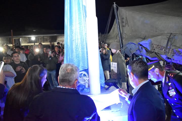 Poco antes de la medianoche inicio el acto para recibir este día y en la oportunidad Mario Gamarra, hijo del excombatiente Rubén Gamarra, compartió un mensaje y tras la entonación del Himno Nacional Argentino, el intendente José Irigoyen hizo uso de la palabra, ocasión en "que llamó a recordar a nuestros héroes cuando damos lo mejor de nosotros en cada tarea, construyendo una comunidad digna de su entrega”.