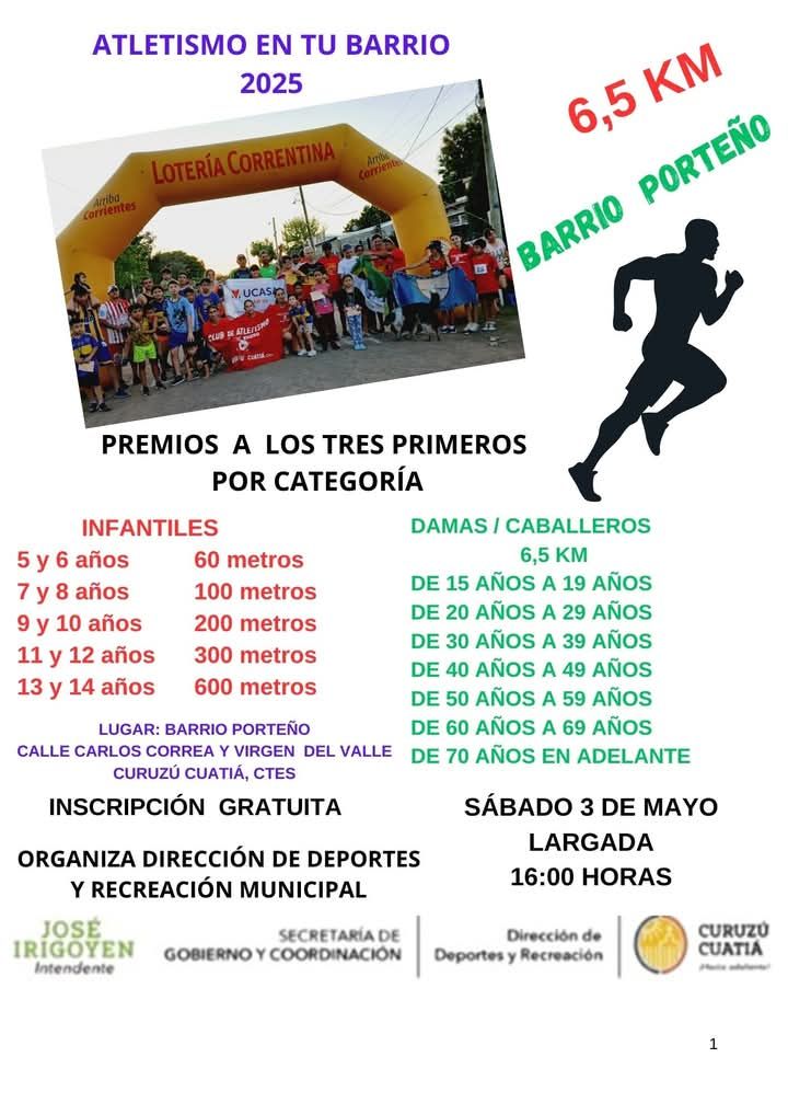 Sábado 3 de mayo a partir de las 16 horas en el Barrio Porteño, se trata de la prueba “EL ATLETISMO EN TU BARRIO” 2025.