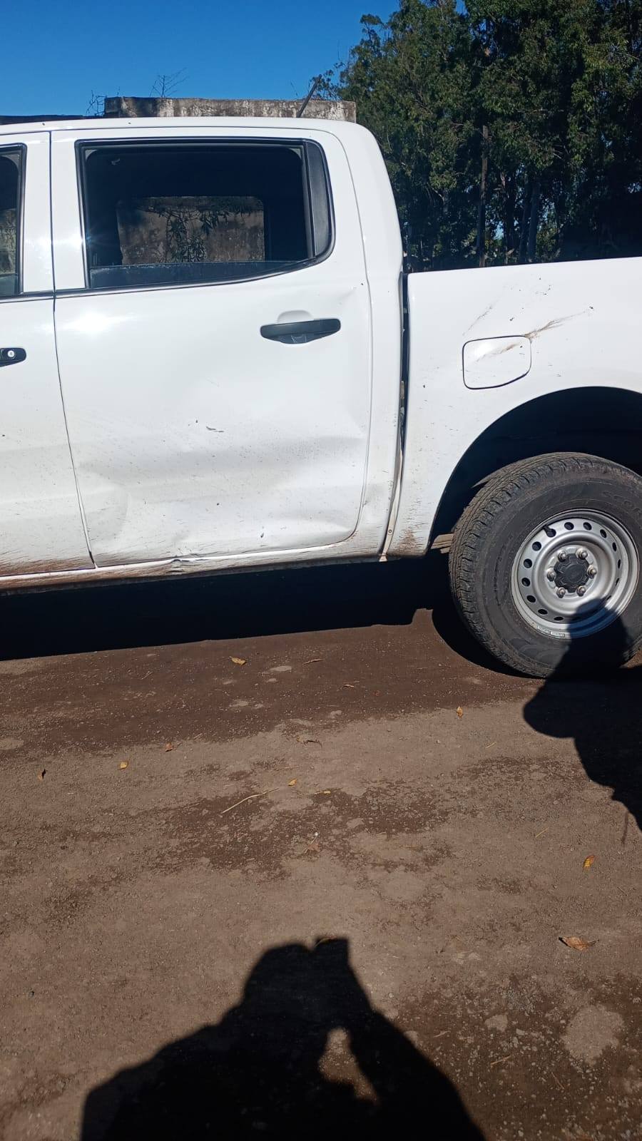 La camioneta, guiada aparentemente por una mujer, terminó dañada del lado izquierdo.