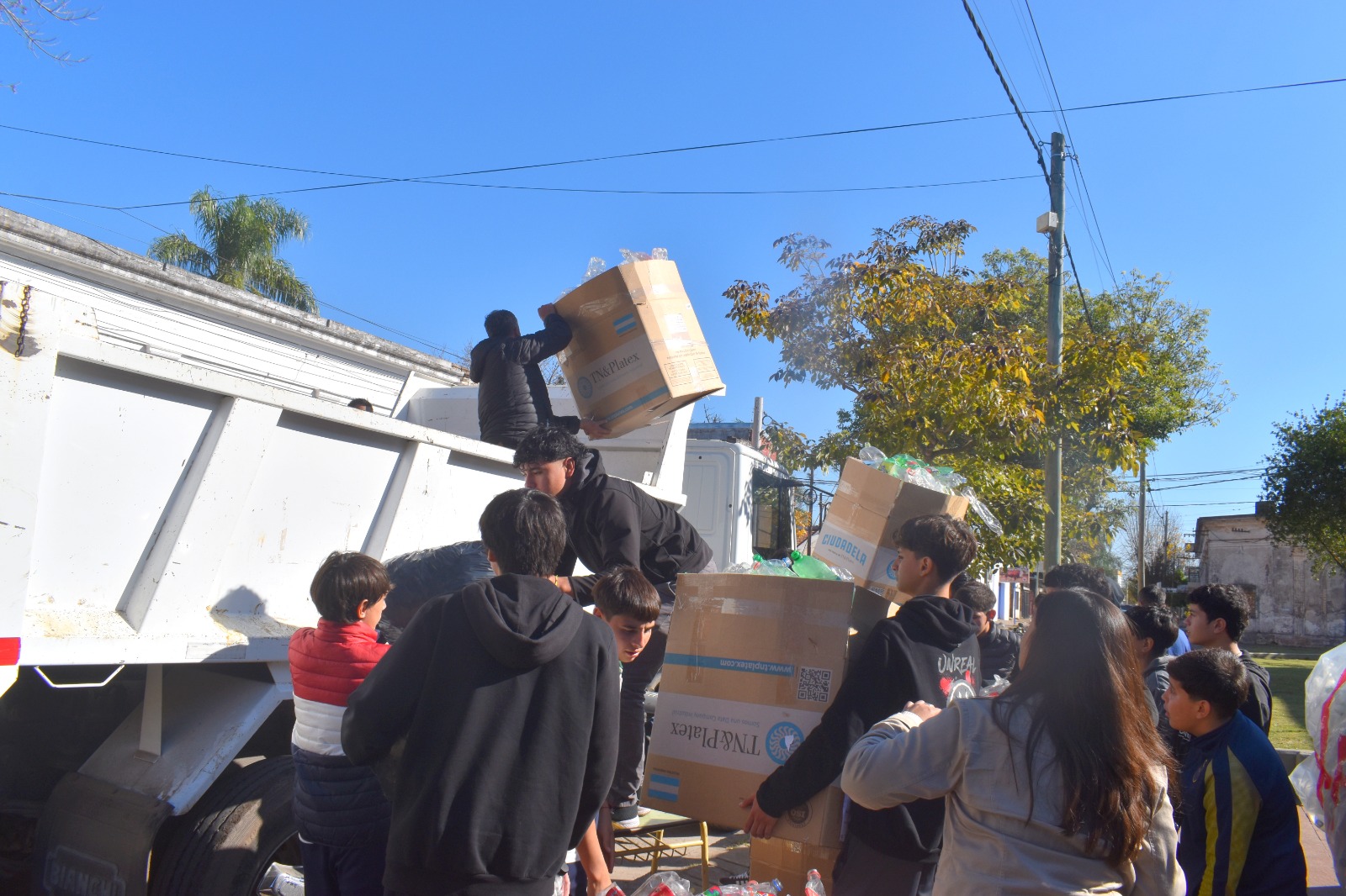Los alumnos ayudaron a cargar todo este material en un camión municipal para su correcto traslado desde el Colegio hacia PLAMARES, tarea que contó con el acompañamiento del Intendente José Irigoyen y la Senadora Provincial Verónica Espíndola.