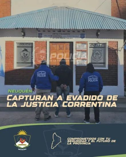 Por este procedimiento, los efectivos de la Policía de Neuquén comunicaron a la Dra. Laura Ais, de la Oficina de Ejecución Penal, quien informó que, por disposición del Dr. Cristian Piana, juez en turno del Colegio de Jueces de la I Circunscripción Judicial de Neuquén, se proceda a notificar al aprehendido de su detención, a la espera del proceso de extradición de la Justicia de Curuzú Cuatiá.