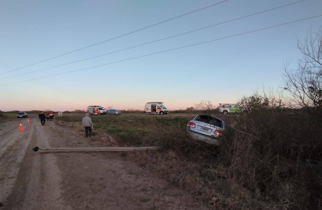De acuerdo a lo informado desde Bomberos a Enfoque Digital, en horas de la tarde del domingo un automóvil Chevrolet Corsa, guiado por una mujer, despisto cuando circulaba por Ruta Provincial 126, volcó y se estrelló contra un poste del tendido eléctrico.