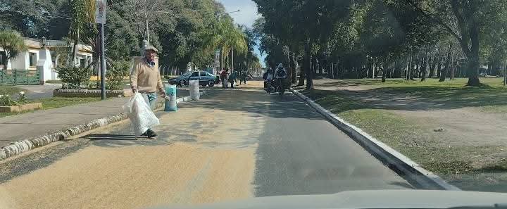 Por causas que se desconocen un camión con acoplado perdió parte de la carga que transportaba, la que quedó desparramada sobre la cinta asfáltica.