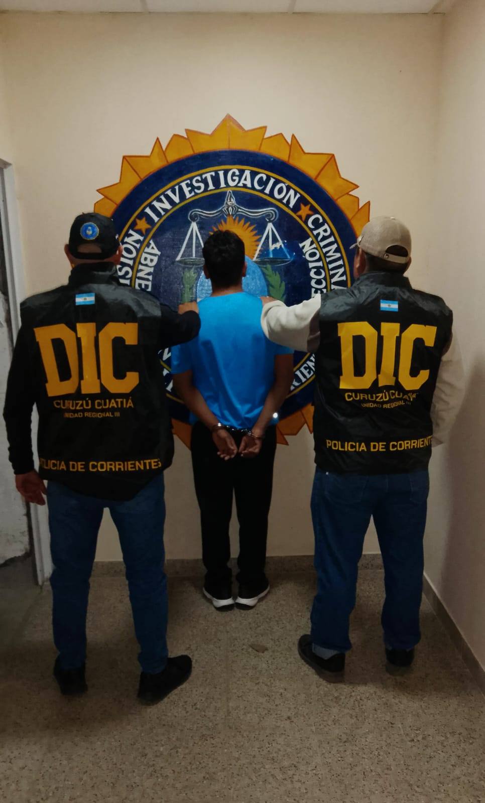 Todo con conocimiento de las autoridades judiciales, se procedió al traslado del detenido a Curuzú Cuatiá donde C. V. quedará alojado en la sección alcaidía de Comisaría Primera, también se realizó el secuestro y traslado de la motocicleta Honda de 250 cc hasta la División de Investigación Criminal de Curuzú Cuatiá.